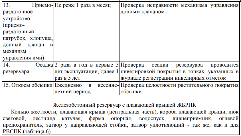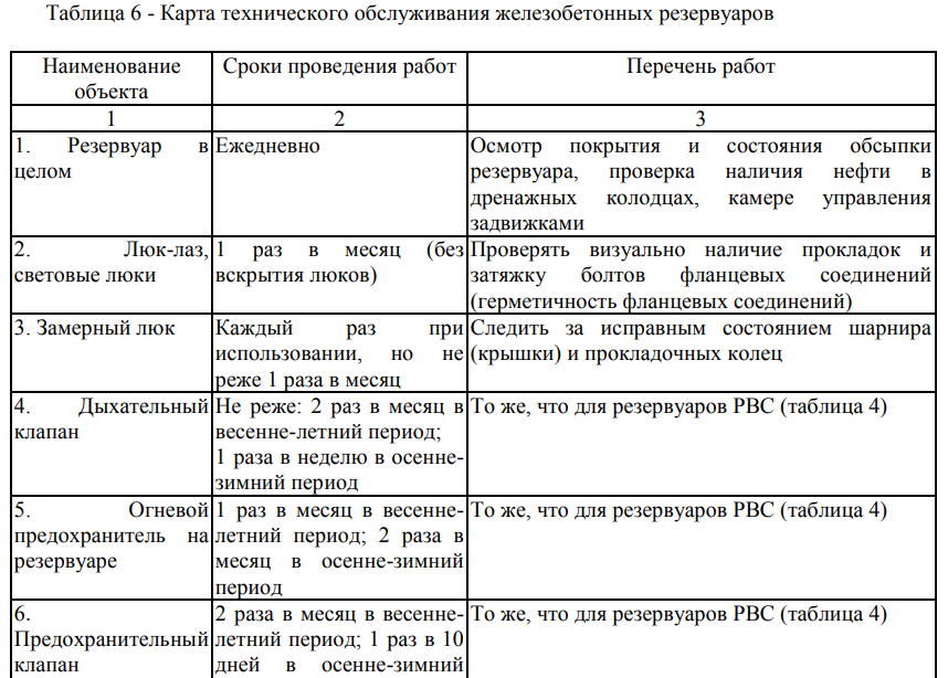 4.3.1. Осмотр и техническое обслуживание резервуаров должны проводиться в соответствиис картами технического обслуживания (таблицы 3-6).